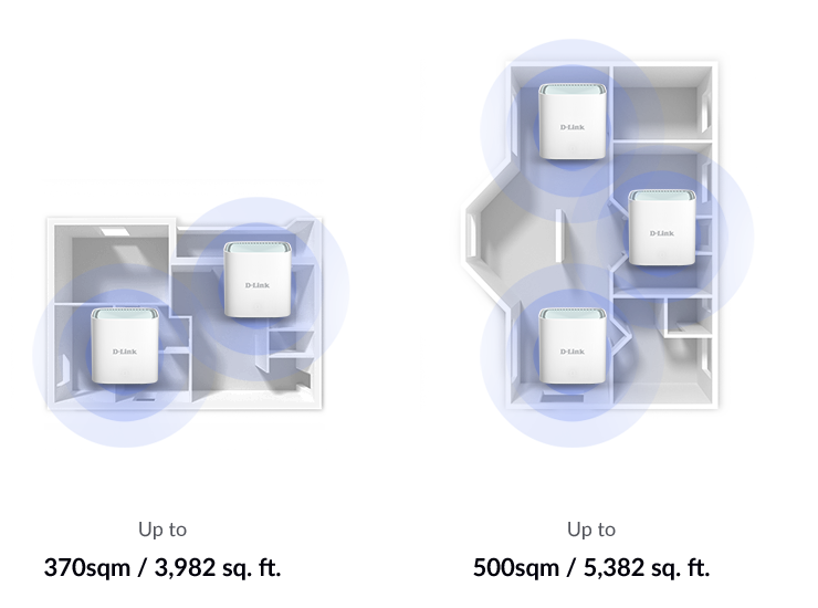 Des appartements de plain-pied aux maisons de 4 étages, en passant par les sous-sols et les terrasses de jardin, les unités EAGLE PRO AI M15 supplémentaires offrent une couverture réseau maillée plus importante. Vous bénéficiez ainsi d’une couverture Internet haut débit continue qui éliminera les zones mortes Wi-Fi dans ces lieux difficiles d’accès dans toutes les propriétés, quelle que soit leur taille.