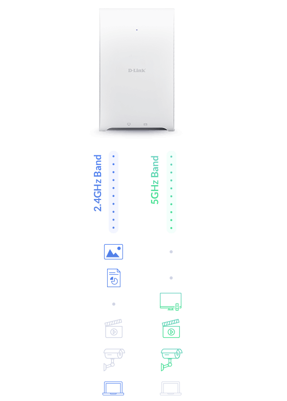 | | Band steering Detects dual-band capable devices and automatically connects them to the less congested, faster 5 GHz band. |