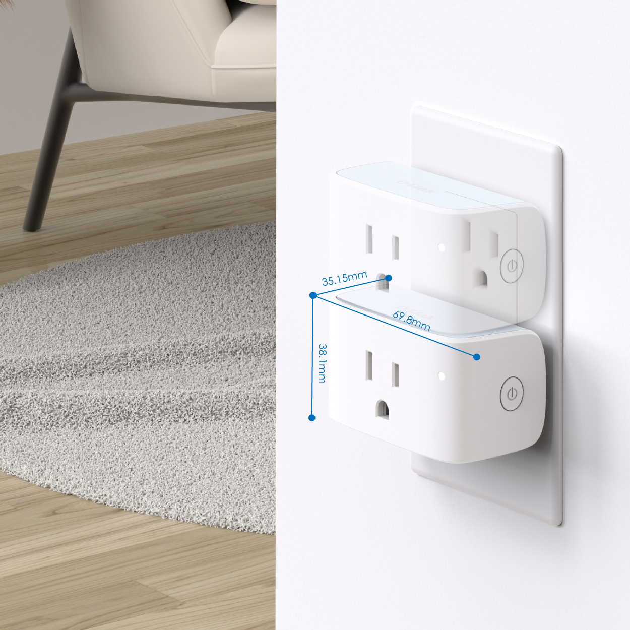 Tired of bulky plugs that take up too much space and block adjacent outlets? With its compact design measuring just 69.8 x 38.1 x 35.15 mm, this smart plug fits seamlessly into any outlet.