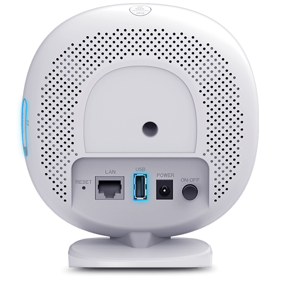 The hub also has a microSD card slot and a USB port for connecting an external hard drive and storing videos locally.