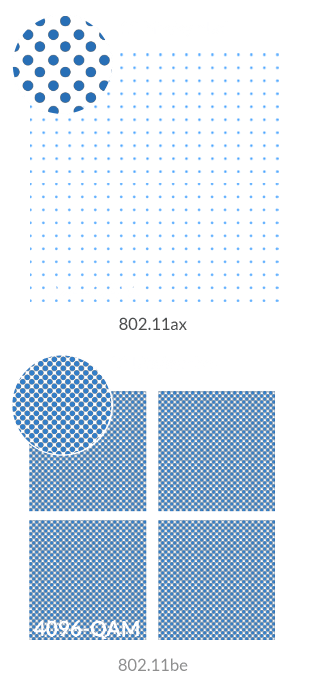 Κάθε σύμβολο φέρει 10 bit αντί 8 bit σε σύγκριση με το 802.11ac 256-QAM, βελτιώνοντας τις ταχύτητες κατά 25%.