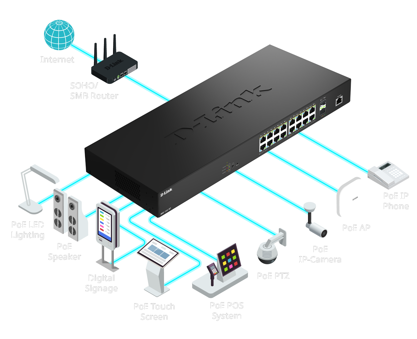 The DMS-1250 Series switches elevate your network with 2.5 Gbps ports, optimized for Wi-Fi 6 access points to maximize throughput and speed. Multi-Gigabit Ethernet eliminates bottlenecks, fully utilizing Wi-Fi 6’s high performance.