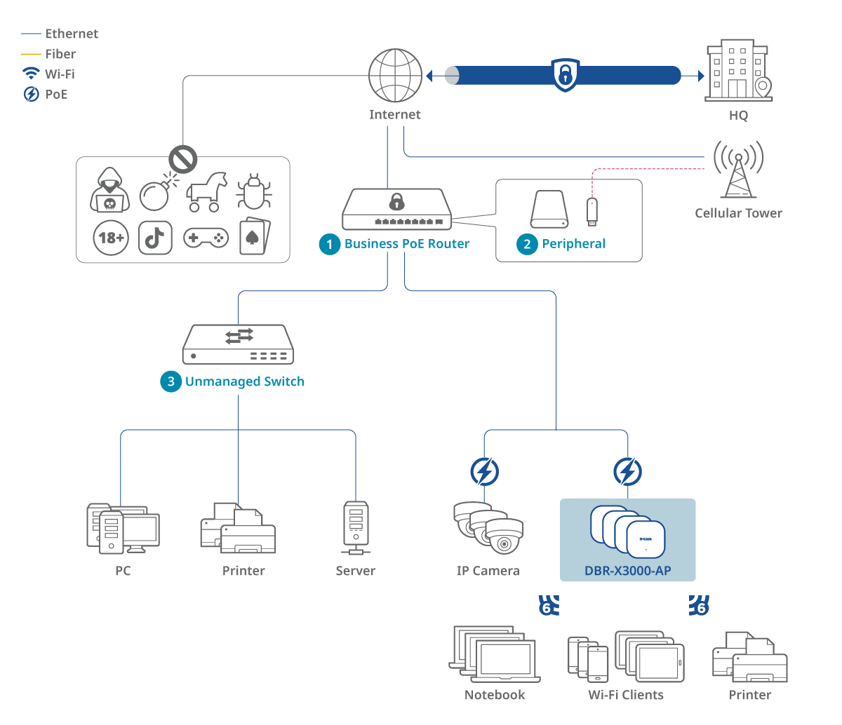 Setting up and managing the DBR-X3000-AP becomes convenient and effortless. Integrated with the DBR series business routers, you can not only centrally control all access points at once but also monitor your network in real-time and troubleshoot through the intuitive dashboard. It is time to frees up resources and allows IT teams to focus on more critical tasks.