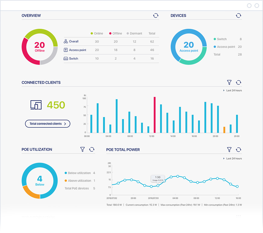 Déployez des switches et des points d’accès rapidement et efficacement et gérez-les à distance à partir du Cloud.