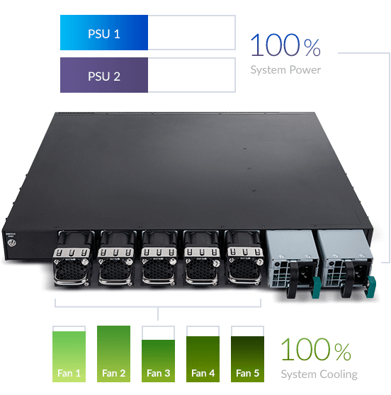 The DXS-3610 Series features a modular fan back-up design, providing n+1 redundancy for the system. The modular power design allows AC power sources for maximum deployment flexibility. With dual power modules, the power load is distributed, extending the lifetime of the modules.