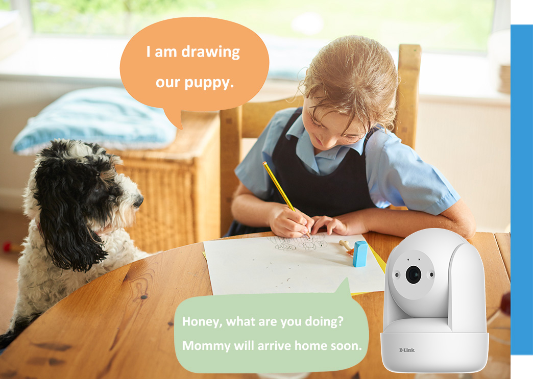Den inbyggda mikrofonen och högtalaren för tydlig tvåvägskommunikation i realtid med dina nära och kära eller husdjur.