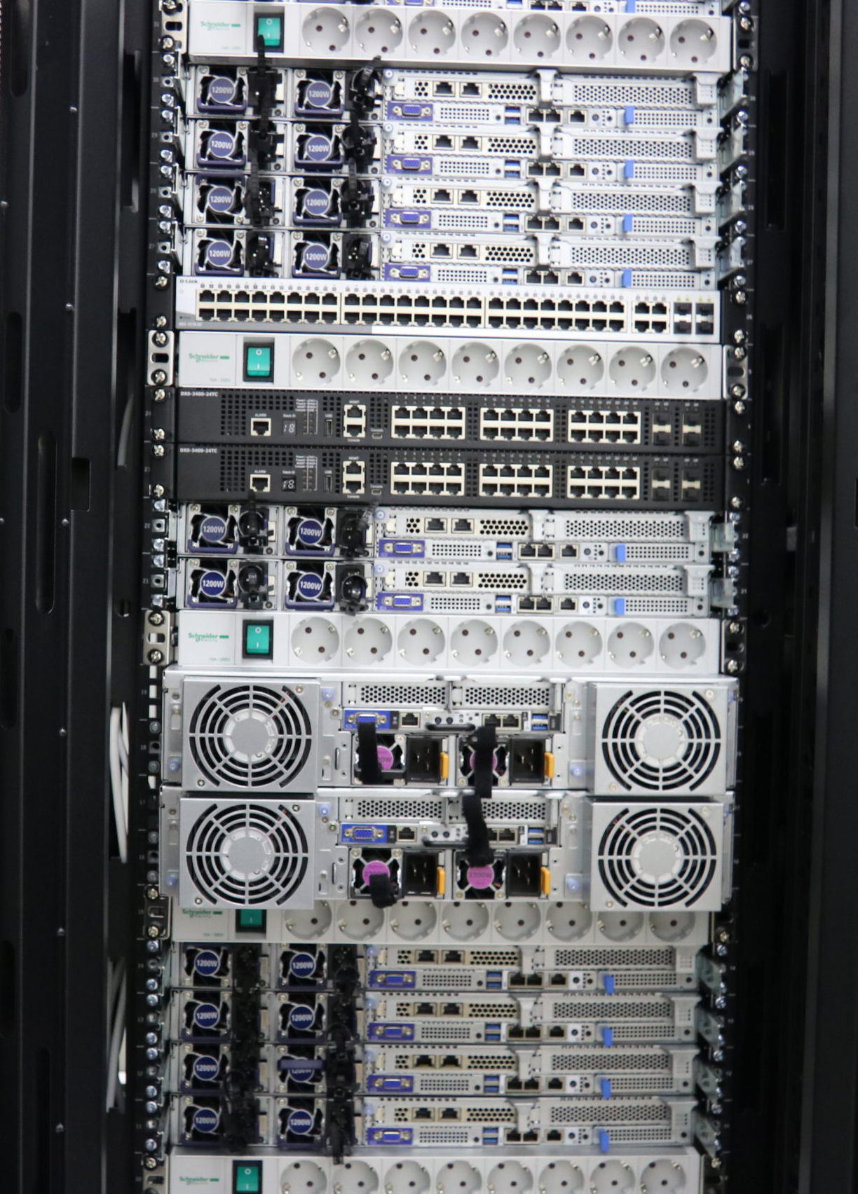 In September 2021, a new extension based on the D-Link DXS-3610-54T/SI Switch was completed (a series that developed the DXS-3400 series with Open Flow and SDN, with copper and fibre 10-Gigabit ports, as well as 40G/100G QSFP+/QSFP28 ports) and new GPUs. Following this upgrade, the computational cluster has 17 GPUs with over 330 TFlops in single precision, and more than 178,000 CUDA cores. Thanks to D-Link’s SNMP management software, D-View 7, joint monitoring of the two clusters can be achieved.